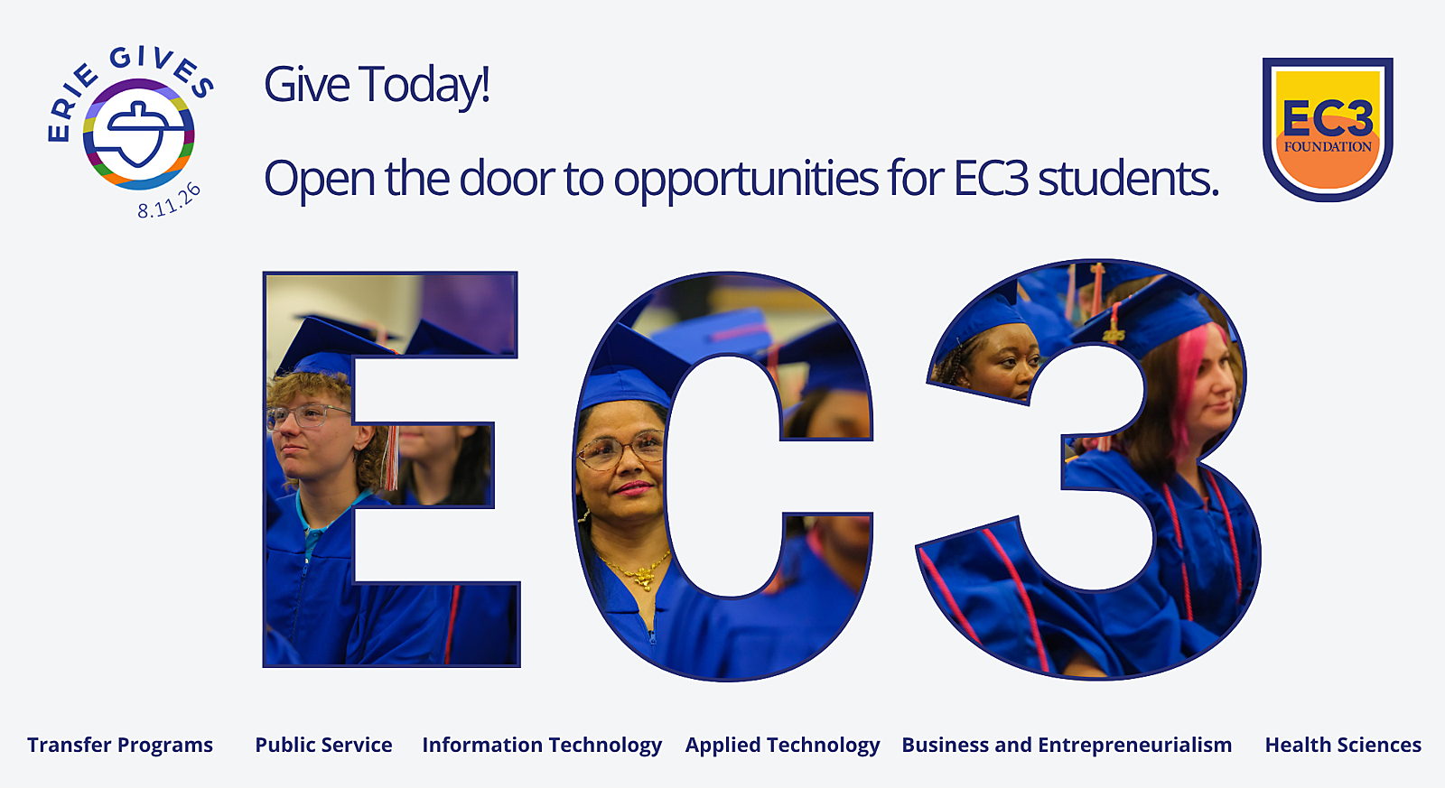 When you give to EC3 on Erie Gives Day, August 11, your donation directly impacts students through the EC3 Scholarship Fund.